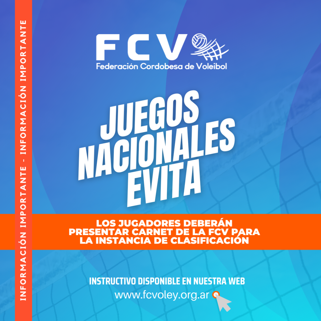 Juegos Nacionales Evita Juegos Nacionales Evitalos jugadores deberán presentar Carnet de la FCV para la instancia de clasificación Ver Instructivo Aquí Prensa2022-09-29T20:57:23-03:00